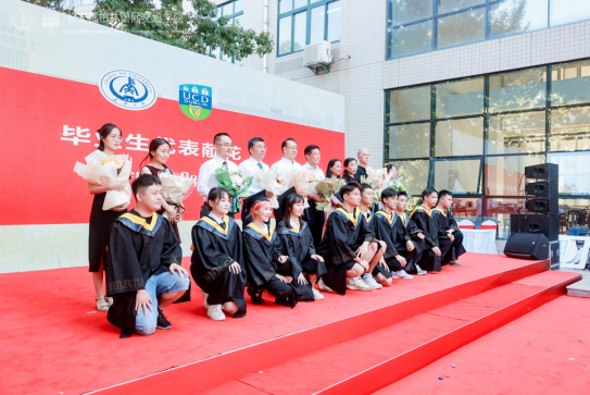 学院教务长Paul Fanning表示,同学们在求学期间克服了各种困难与挑战,展现出了令人钦佩的毅力。感谢同学们对学校和学院的奉献,希望同学们未来都能怀念起在CDIC度过的美好时光,祝同学们一切顺利。都柏林大学副校长Dolores O'Riordan与外方专业负责人也发来视频祝福,表达对首届毕业生的美好祝愿。