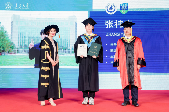 副校长裴建中教授和都柏林大学副校长Dolores O'Riordan教授分别授予2023届毕业生中外双方工学学士学位。