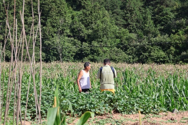 乡村振兴的根本在于让农民生活富裕,为实现该目标,团坪村积极谋划产业脱贫致富新路子。何主任介绍,村子里主要产业为农业,村民们大多种植玉米和天麻,在最近中药材价格高时也会采取野生的连翘进行售卖,大多村民的年收入能达到3至4万元。但天麻的生长对生产环境要求较高,去年受高温影响,大多村民收益不佳。随后,何主任带领实践团队到田间地头观察天麻、玉米、芝麻和西红柿等农作物的生长情况。