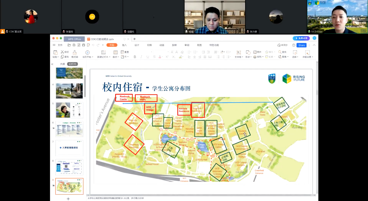 余兆源对本次参加都柏林大学暑期夏令营的同学表示欢迎。他从都柏林大学学校整体情况、校园设施、住宿环境、校园生活等方面进行讲解,并针对本次夏令营的行前准备注意事项及到达须知作重点介绍,为参营同学们提供了许多有用建议。