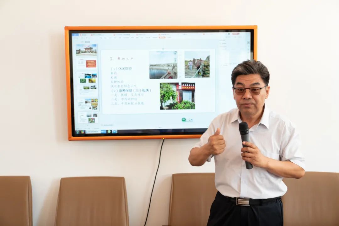 实践队在“陕西省乡村振兴教育培训现场教学基地”—杨井镇沙渠子村现代农业专业合作社进行参观学习,实地调研当地党建引领、“三变“改革与乡村振兴成果。原靖边县人大常委会主任、一级调研员白春阳为实践队全体队员讲述了一堂生动的乡村振兴实践课,从发展目标、乡村及产业规划、产品设计及文化赋能等方面,详细讲解了合作社在发展壮大集体经济,实现共同富裕方面的具体做法和发挥的突出作用。