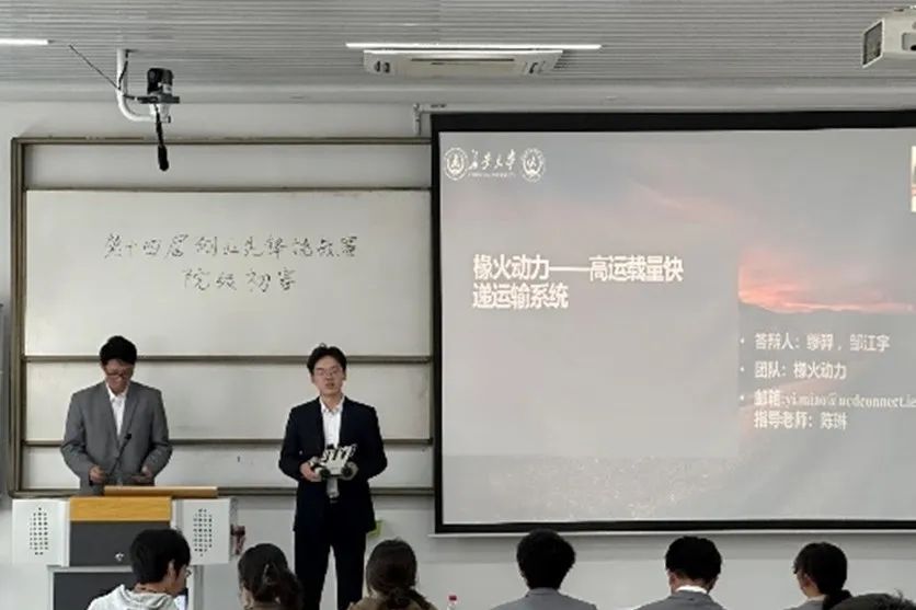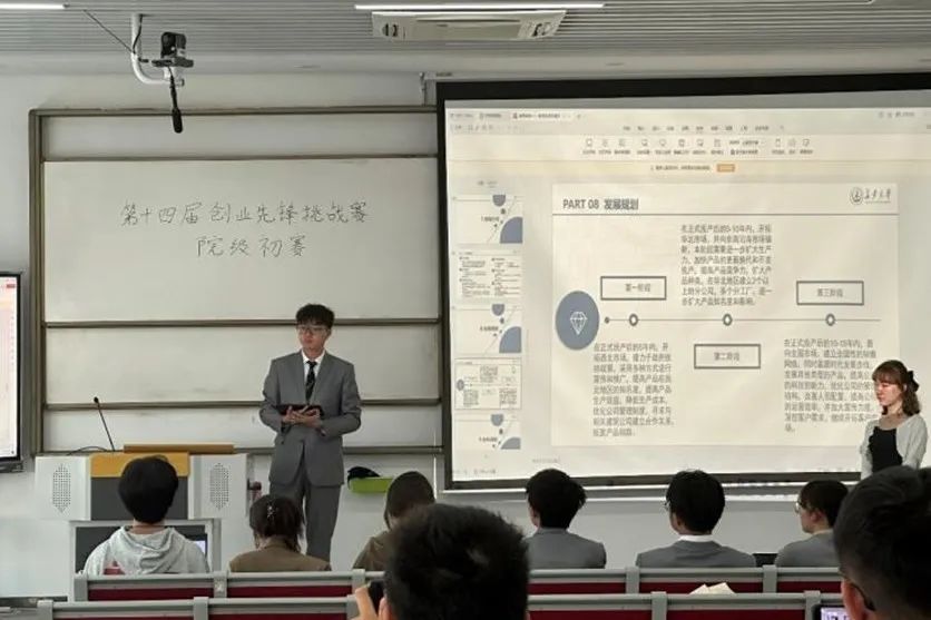 参加本次比赛的11支团队按照赛前抽签顺序,依次进行答辩,各团队代表分别从作品的背景、市场需求、销售经营、财务分析、未来发展等方面进行了5分钟的项目展示。各组参赛队伍的作品选题种类丰富,与智能公路检测、智能交通设备、智慧交通、智慧生活等方向紧密联系,有一定的实践价值。