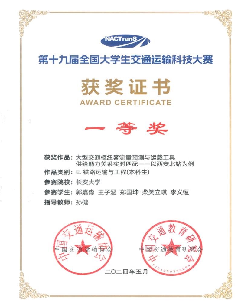 2022级学生郭嘉淼、王子涵、郑国坤、柴笑立琪、李义恒在此次竞赛中突破性获得国家级一等奖1项(学院历史最好成绩),此外,学院还获得省级一等奖2项。