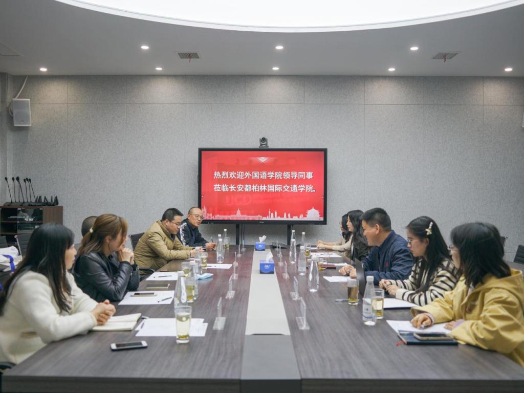 在鸿远教学楼四楼会议室举行外国语学院来访调研座谈会。外国语学院院长冯正斌、副院长张秀见、及外国语学院相关部门负责人,黄色仓库