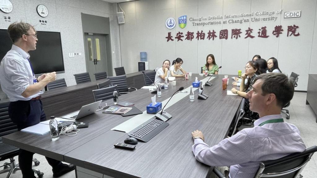 在在鸿远教学楼四楼会议室组织开展2022级中方英语教师教学法研讨会,都柏林大学英语语言中心督导Alex Runchman和副督导Stephen Kelly以及9名中方英语教师参加了本次研讨会。