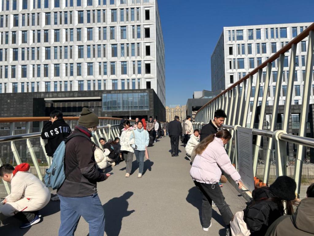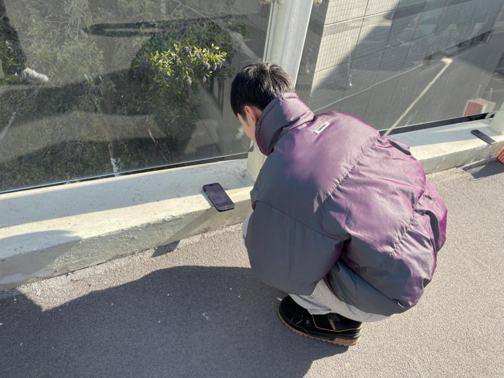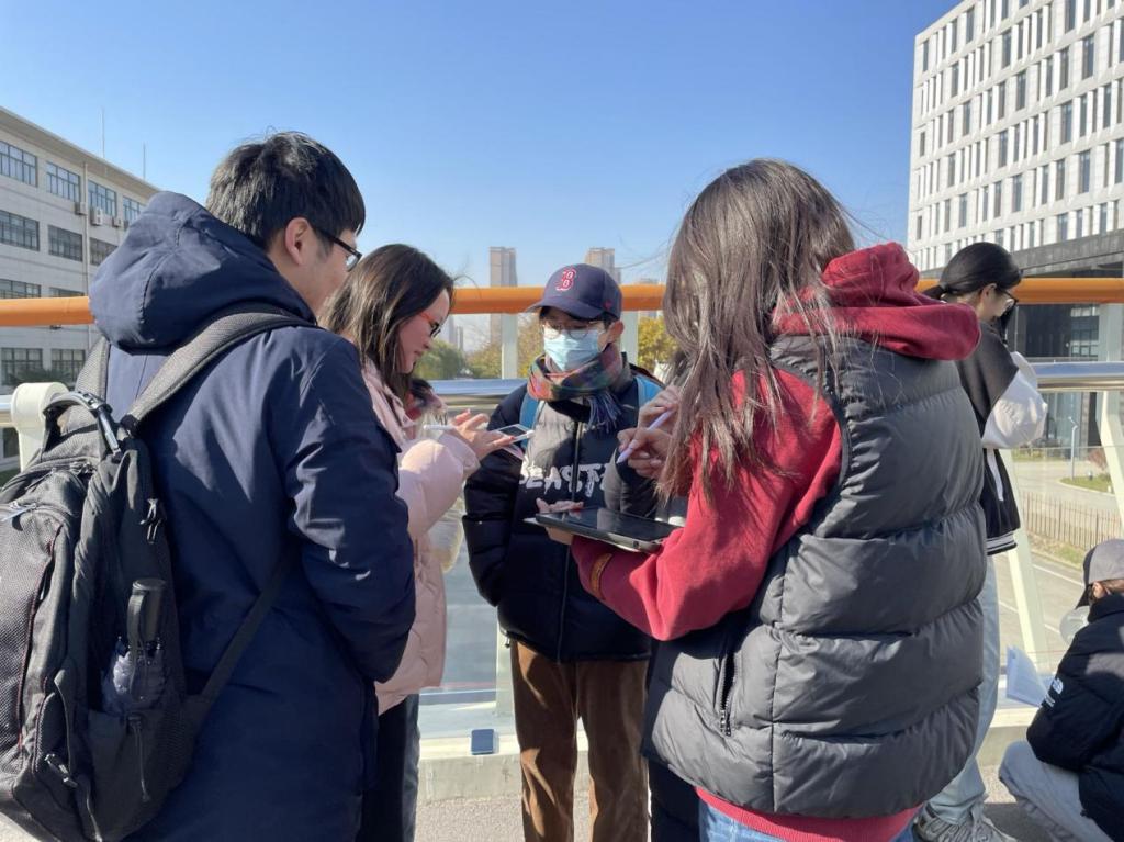 全体学生以小组为单位分批前往人行桥,并按照编号找到相应的测点位置。全员集合完毕后,在Ekin教授和中方课程协讲老师的指导下,学生开始采用Sensor Logger软件对人行桥主跨不同位置环境激励下的加速度开展采样工作,加速度采样单次持续23min,共持续2次。