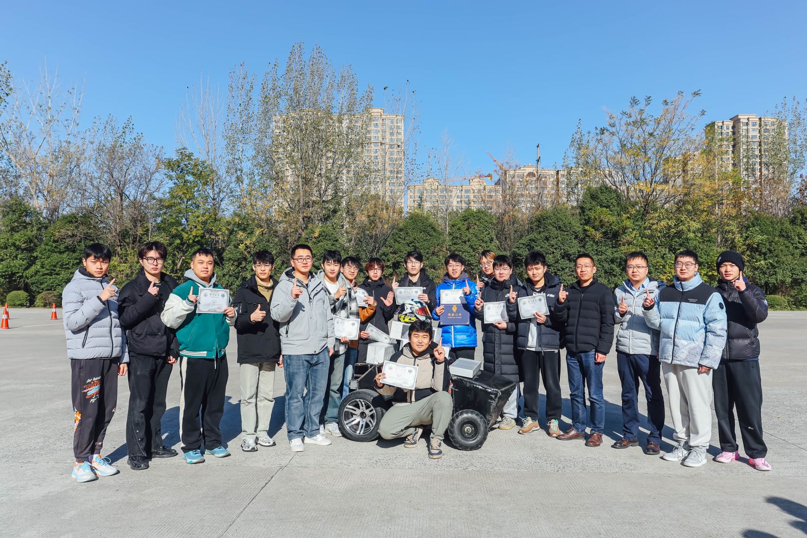 经过激烈的角逐,第六组凭借出色的设计理念、卓越的性能表现、合理的成本控制以及整车结构的精细优化,从众多参赛团队中脱颖而出,由评审团队评选为本次考核的第一名。同时,他们在观众投票环节也广受好评,同时赢得“最佳设计奖”。第七组和第四组则分别凭借优异的表现荣获第二名和第三名,展现了各自团队的创造力与实力。