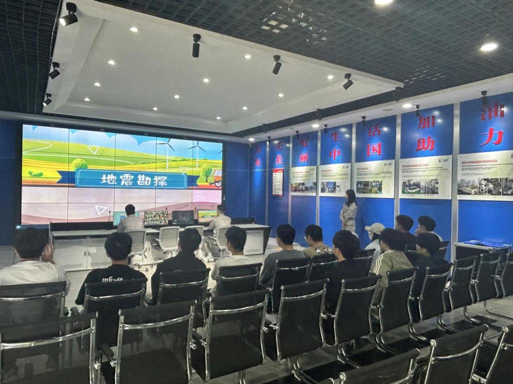 研学队伍首先抵达迎宾大道地热能源中心中深层地热采灌结合项目,观看了企业宣传片和地热能源科普动画,对公司的发展情况及地热能基本原理有了初步了解。生产技术部工程师围绕“地热供暖的发展与应用”进行专题讲解,从资源特点、应用场景到技术路径,系统介绍了地热供暖的发展现状与应用成效。随后,在讲解员带领下,师生们实地参观了迎宾大道地热能源中心,深入了解设备运行、系统配置及中心功能布局等情况。