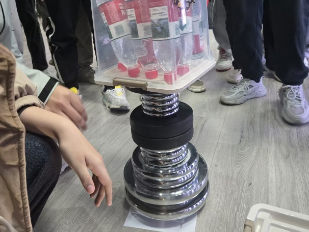 在随后的承重测试中,各纸质结构依次进行配重试验,多组作品成功承载 50公斤至60公斤的重量,展现出较强的结构设计效果。
