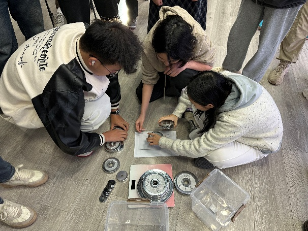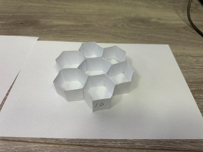 作品制作完成后,各小组将纸质结构摆放至展示区,同学们依次参观交流,讨论不同设计在折叠方式、受力路径等方面的特点。
